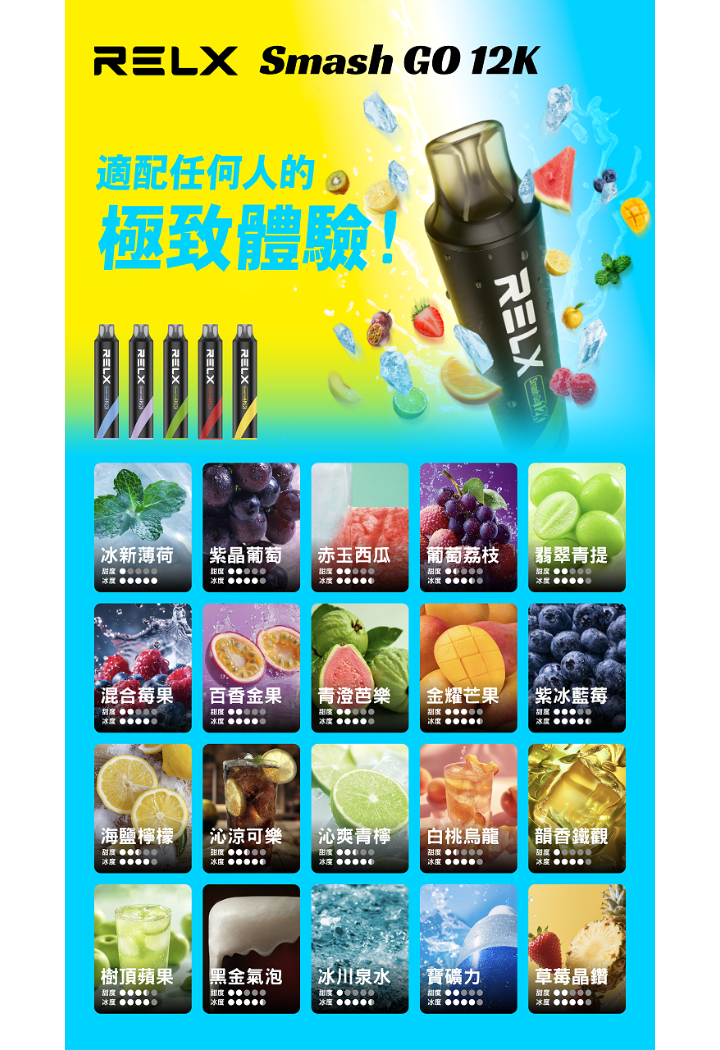 悅刻 抛棄式 12000口(RELX Smash Go 12K)